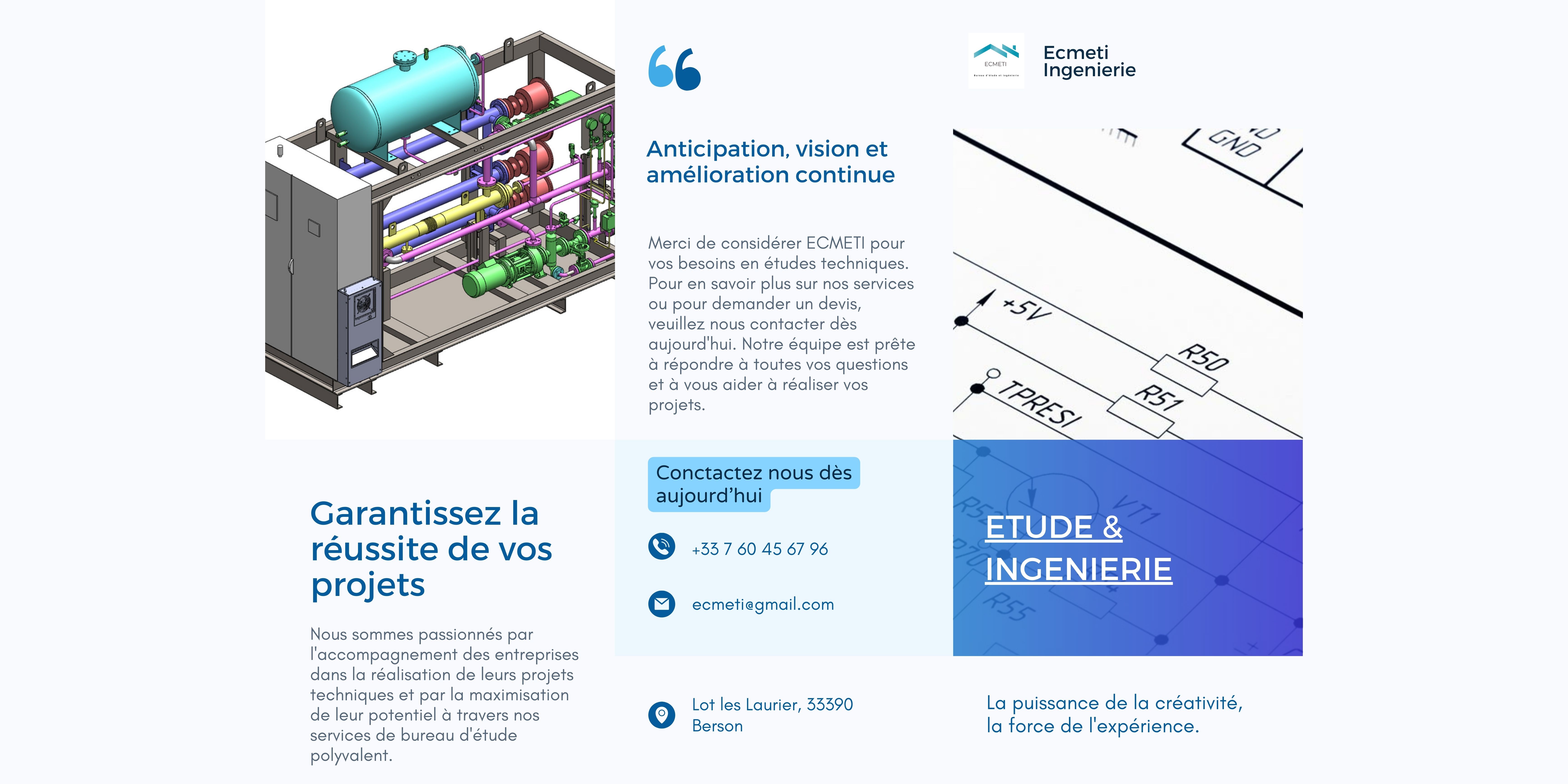 Engagée auprès de ses partenaires, ECMETI s’appuie sur une équipe expérimentée pour assurer la réussite des projets les plus ambitieux, tels que l’extension ACTEON. Notre priorité : construire une relation de confiance durable avec nos clients, fondée sur l'écoute, la rigueur et l'excellence opérationnelle.